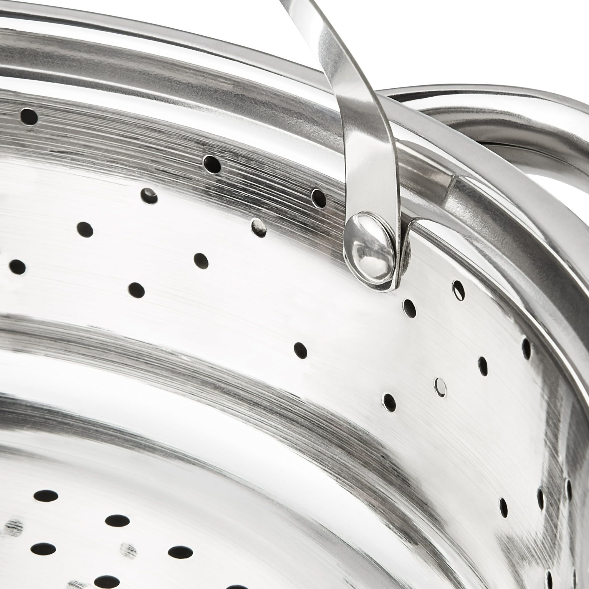 Prepare amazing sauces, pastas, potatoes, corn-on-the-cob, and more with the ample Mainstays Stainless Steel 8-Quart Multi-Cooker with Glass Lid. This large multi-cooker measures 9.76" L x 9.76" W x 12.60" H and is perfect for any occasion. The 4-piece set includes a stock pot, colander, steamer basket, and glass lid. Designed with stylish stainless steel and glass, it's sure to coordinate with your existing cookware. This sturdy multi-cooker features stay-cool handles, a heat- and shatter-resistant glass lid, durable, stainless steel construction, and a tri-ply base for quick and even cooking. Ideal for get-togethers, backyard barbecues, and other special events, the Mainstays 4-Piece Stainless Steel 8-Quart Multi-Cooker with Glass Lid is a must-have cookware item in any kitchen.
