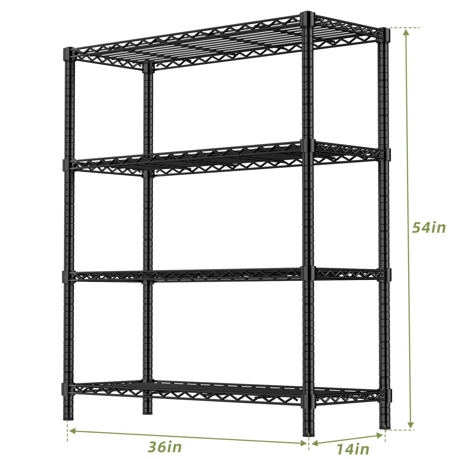 Heavy-Duty 350LB Capacity per Shelf: Industrial-grade steel construction with thick wires and reinforced crossbars supports up to 350 lbs per tier—ideal for tools, appliances, or bulk storage.